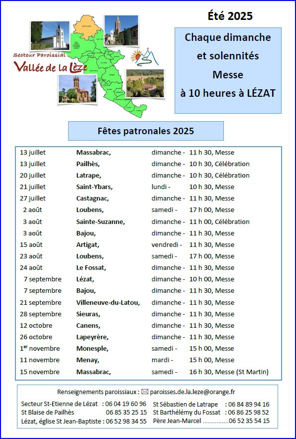 Agenda et annonces du Secteur Paroissial de la Vallée de la Lèze